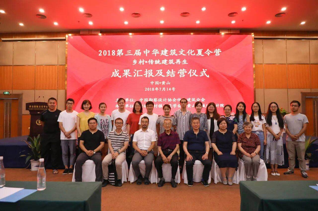 2018年7月14日,由中國勘察設計協會指導、中國勘察設計協會傳統建筑分會主辦、安徽省村鎮建設學會和黃山市城建設計院共同承辦的以“鄉村·傳統建筑再生”為主題的第三屆中華建筑文化夏令營結營儀式在黃山國際大酒店舉行。清華大學建筑學院教授單德啟、中勘協傳統建筑分會副會長黃滋、中勘協傳統建筑分會秘書長王新華、中勘協傳統建筑分會常務理事李早、安徽省村鎮建設學會理事長程堂明、黃山市城建設計院院長陳繼騰等領導以及營員等約90人參加了結營儀式。黃山市城建設計院副院長陸笑旻主持會議。