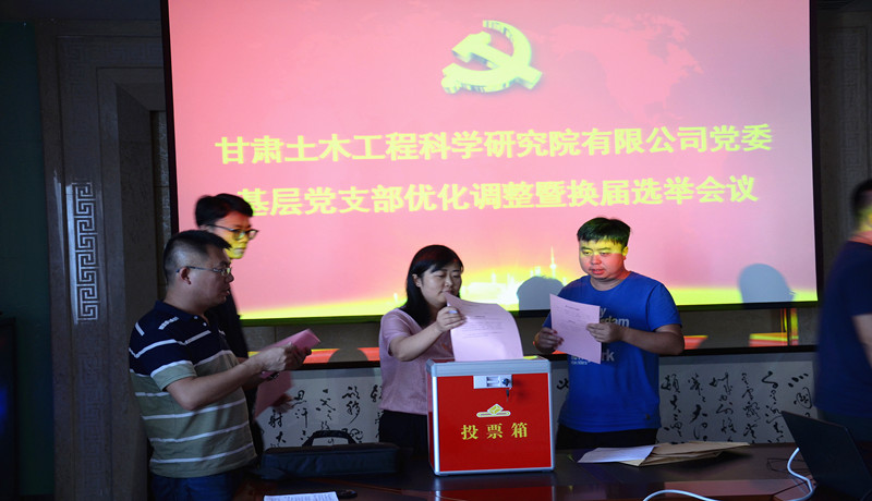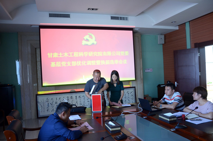 根據《中國共產黨章程》、《中國共產黨黨和國家機關基層組織工作條例》、《中國共產黨基層組織選舉工作暫行條例》相關規定,結合新確定的公司組織結構,經公司黨委研究,對公司基層黨支部整合調整設置。調整后設6個在職黨支部、16個黨小組,會議傳達了公司《基層黨務工作者選任及管理辦法》以及《甘肅土木工程科學研究院有限公司黨委基層黨支部換屆選舉辦法》,介紹了候選人簡況,采用無記名投票的方式選舉出支部書記和支部委員。
