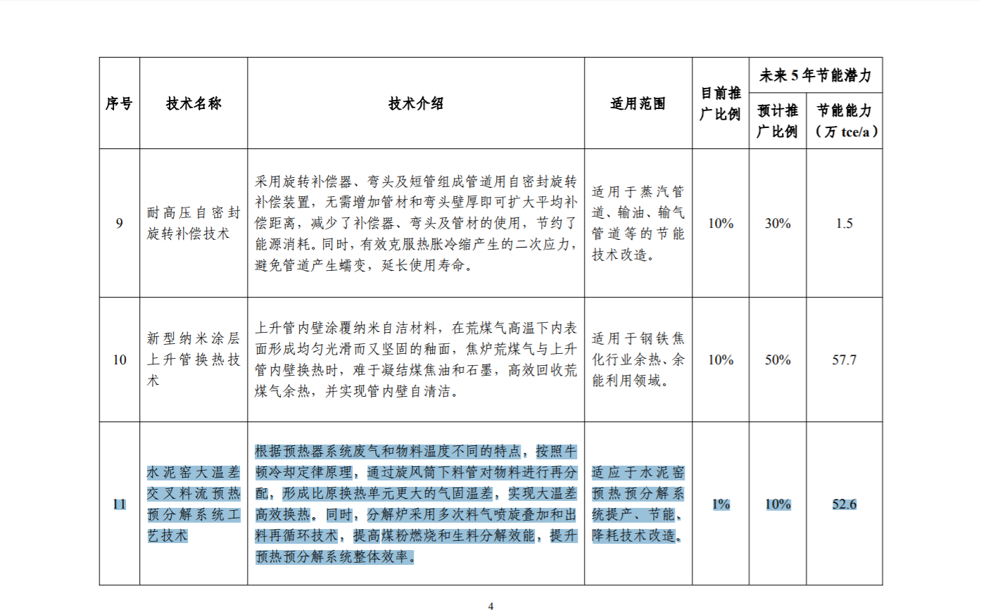 日前,工信部網站發布公告,為加快推動高效節能技術裝備的推廣應用,引導綠色生產和綠色消費,工信部組織編制了《國家工業節能技術裝備推薦目錄(2018)》。工業節能技術部分,水泥窯大溫差交叉料流預熱預分解系統工藝技術、干法高強陶瓷研磨體制備及應用技術被列入推薦目錄中。其中,由我公司粉體工程材料研究所負責的一項國家授權發明專利“水泥窯大溫差交叉料流預熱預分解系統工藝技術”被評選列入。