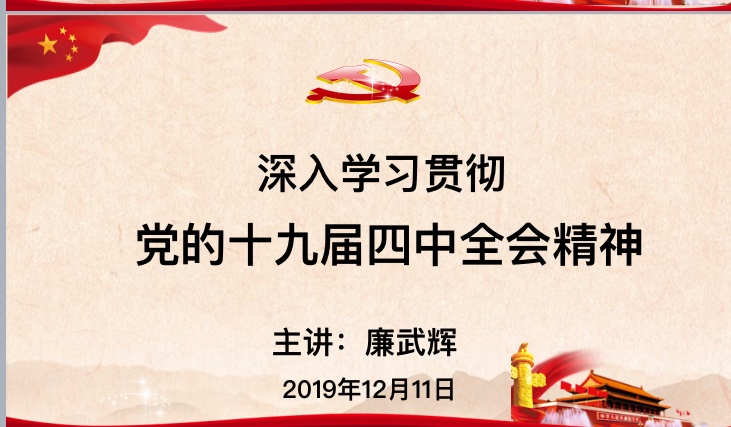為貫徹落實公司黨委指示精神,12月11日下午,第一、三、四黨支部聯合開展“深入學習十九屆四中全會精神”的主題黨日活動,邀請西北民族大學馬克思主義學院副教授,碩士研究生導師,形勢與政策教研室主任廉武輝進行宣講。