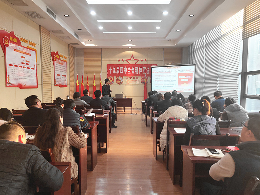 公司黨委書記董紅健及五十多位黨員、入黨積極分子、群眾參加了本次主題宣講。通過本次主題黨日活動,將進一步在支部廣大黨員群眾中掀起學習十九屆四中全會精神的熱潮。