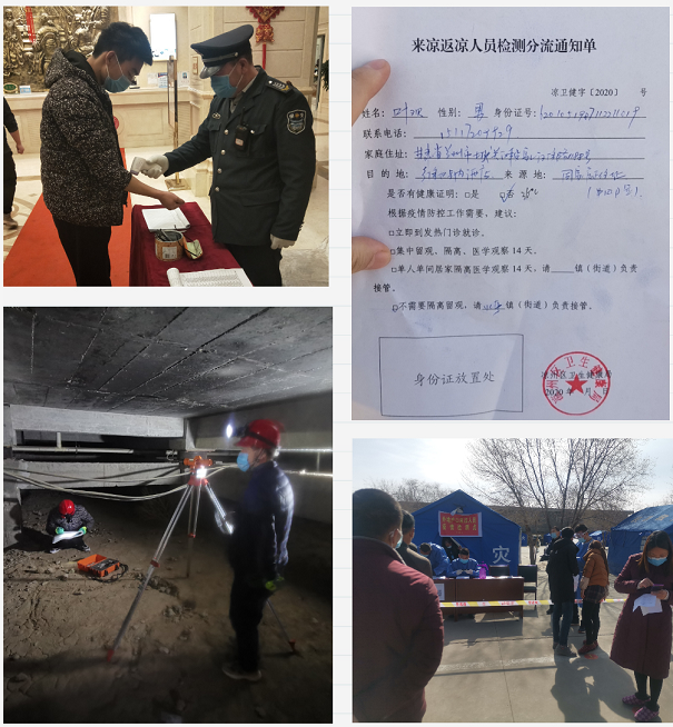 檢測、鑒定板塊在目前開展的:岷縣鎖龍鄉農村住房危險性鑒定項目、隴西縣2020年城市危房改造項目、臨洮縣2018-2020年棚戶區改造房屋危險性鑒定、設計項目、西寧聯勤保障中心藥品儀器監督檢驗站公寓樓鍋爐房可靠性鑒定、蘭州萬里航空機電有限責任公司2#廠房可靠性鑒定項目、靜寧縣2020舊住宅樓改造項目、中央儲備糧蘭州直屬庫05、06#平房倉拱形房屋維修改造項目檢測項目、甘肅省水利水電勘測設計研究院科研設計基地變形監測及建筑物、地下室沉降觀測和邊坡變形監測項目、甘肅省武威第一中學改擴建項目——宿舍樓改造安全性鑒定項目、石化廠8萬噸/年乙烯裝置壓縮機廠房配套改造項目監測鑒定、甘肅復興厚和政中藏醫藥文化旅游產業園項目工程質量檢測、鑒定項目、天慶國際新城B區新建39#、40#商業及幼兒園地下車庫施工質量檢測等項目中,嚴格執行單位復工復產要求中管理措施,保障參與項目人員安全和身體健康。