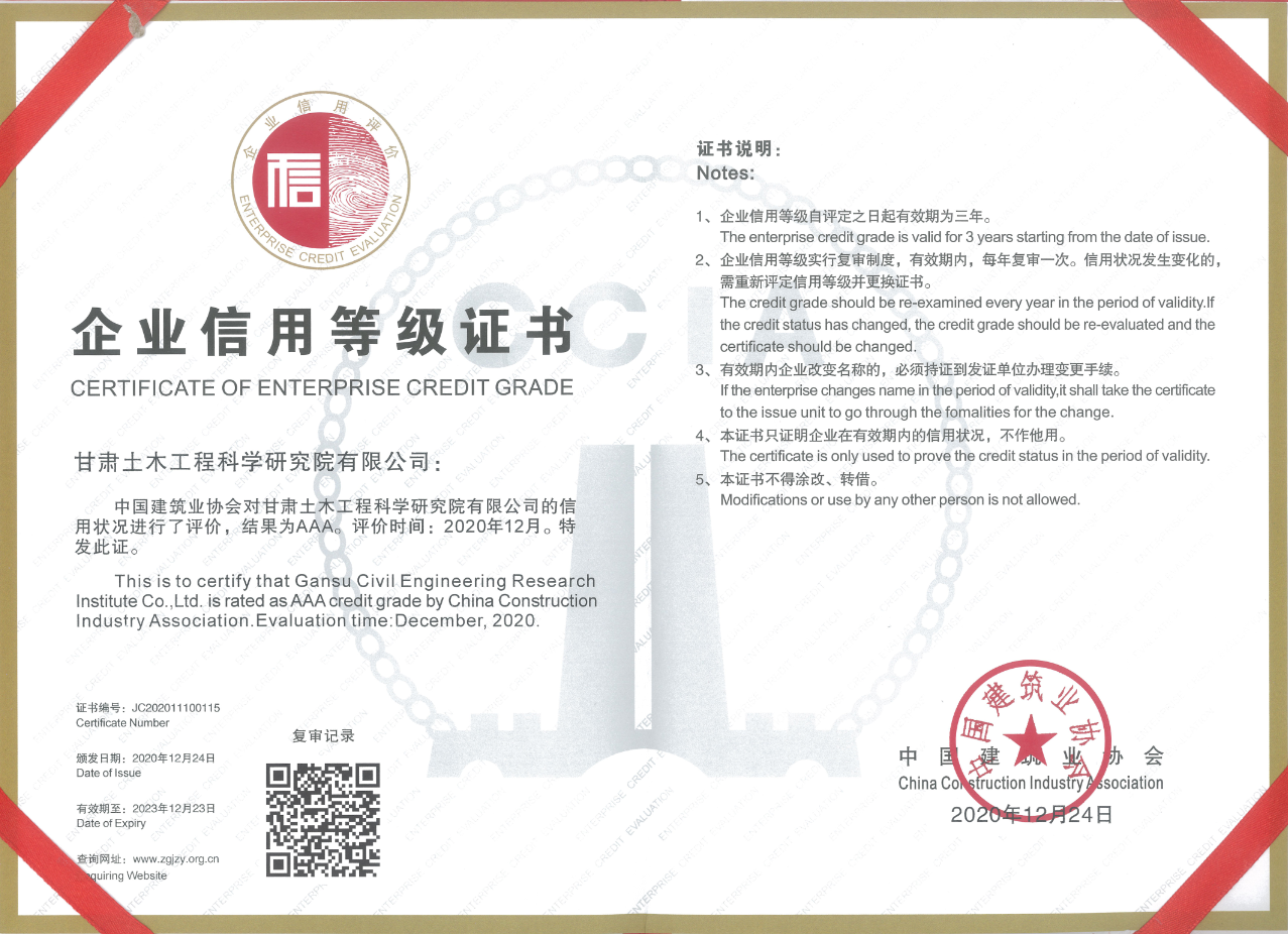 近日,中國建筑業協會公布2020年度全國建筑業AAA級信用企業(檢測機構)名單,我公司獲評2020年度建筑業AAA級信用企業。