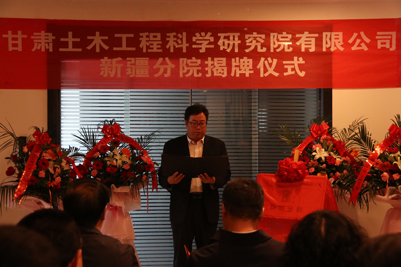 公司黨委副書記、董事、總經理馬靈會出席揭牌儀式并代表公司致詞,黨委委員、副總經理安貴倉主持揭牌儀式,經營管理部、辦公室、施工技術研究所和新疆分院的負責人和部分工程技術人員代表參加儀式。新疆建筑設計研究院、烏魯木齊市建筑設計研究院、新疆四方建筑設計院、新疆建筑科學研究院、新疆建筑科學研究院檢測中心、新疆減隔震技術研究院等單位的領導及專家出席儀式,共同見證了公司新疆分院揭牌。