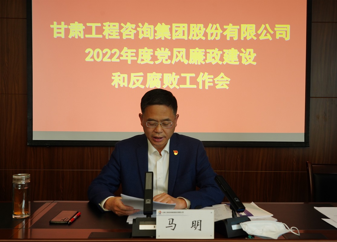 3月28日,甘肅工程咨詢集團召開2022年黨風廉政建設和反腐敗工作會議。黨委副書記、總經理馬明出席會議并講話,黨委委員、監事會主席焦軍毅主持會議,集團公司領導班子成員及相關部門負責人在主會場參會,各子公司黨委書記、董事長(執行董事)、總經理、黨委副書記、紀委書記,相關部門負責人在分會場參加。