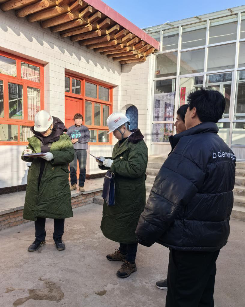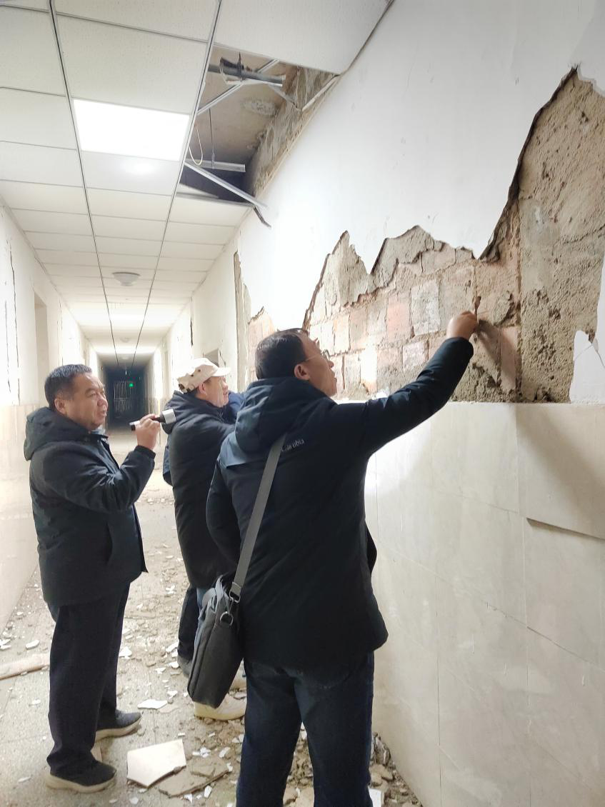 積石山縣海拔高、天氣冷、西風烈。集團公司派出的技術專家發揮各自專業技術特長,到達災區即開展受災房屋安全排查工作。95個專家小組重點對災區學校、醫院、污水處理廠、供熱站、福利院、賓館以及水利工程、居民住宅進行詳細排查,認真出具評估結果,確保讓群眾住到安全的房屋里。