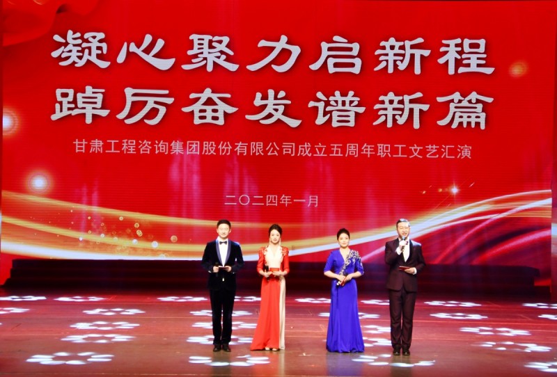 風華正茂五年載,逐夢星辰向未來。1月8日,甘肅工程咨詢集團成立五周年“凝心聚力啟新程 踔厲奮發譜新篇”職工文藝匯演在黃河大劇院隆重舉行。甘肅電氣裝備集團有限公司黨委書記、董事長劉萬祥,甘肅藥業投資集團有限公司黨委書記、董事長周榮,甘肅省水務投資集團有限公司黨委書記、董事長李建軍,甘肅科技投資集團有限公司黨委委員、監事會主席肖建勝,國泰君安證券甘肅分公司副總經理廖光蔚;集團公司原黨委書記、董事長宋忠慶,原黨委委員、副總經理梁建平、喬禎林;集團公司黨委書記、董事長馬明,黨委副書記、總經理張佩峰,黨委委員、監事會主席焦軍毅及其他領導班子全體成員一同觀看了演出。
