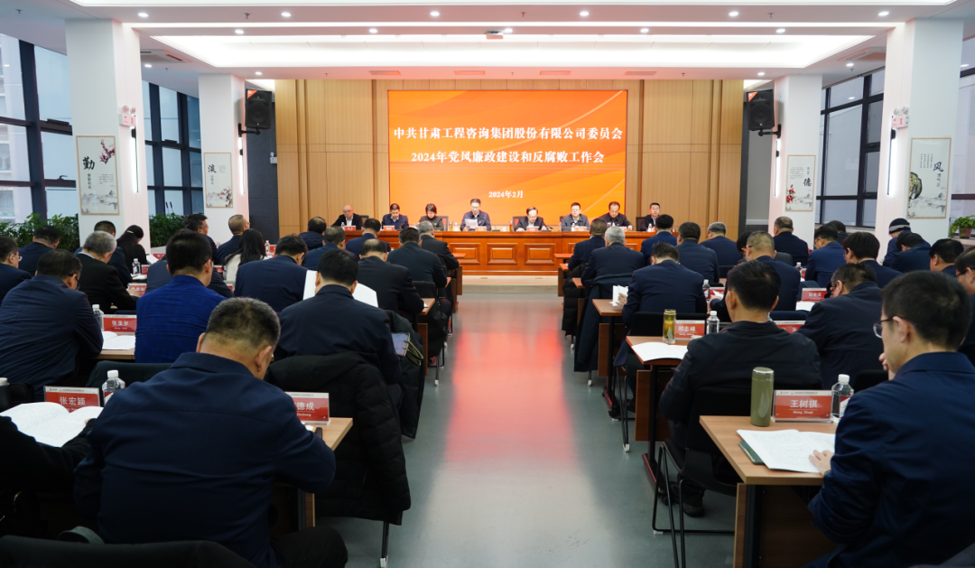 2月3日,甘肅工程咨詢集團召開2024年黨風廉政建設和反腐敗工作會議。集團公司黨委書記、董事長馬明出席會議并講話,黨委副書記、總經理張佩峰主持會議,紀委書記、監察專員師宗正作紀檢監察工作報告,其他領導班子成員參加會議。會議傳達學習二十屆中央紀委三次全會、十四屆省紀委三次全體會議、省國資國企黨風廉政建設和反腐敗工作會議精神,全面總結了2023年工作,安排部署了2024年重點任務,并開展了警示教育。