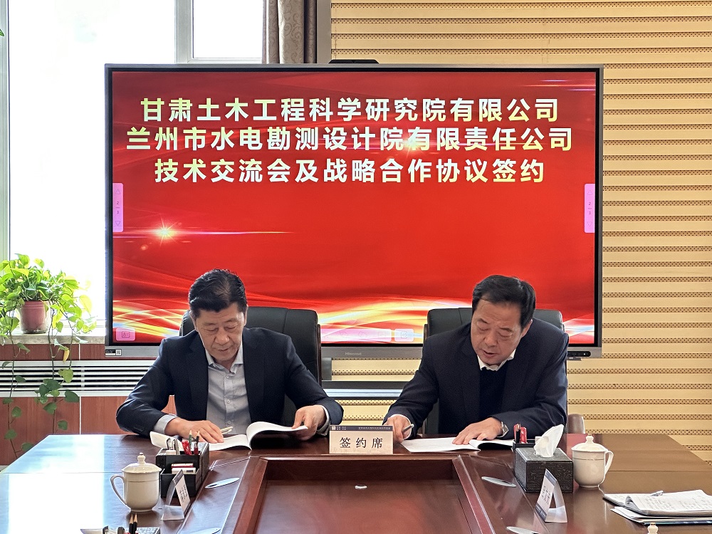 近日,甘肅土木工程科學研究院有限公司(以下簡稱“甘肅土木院”)與蘭州市水電勘測設計院有限責任公司(以下簡稱“蘭州市水電院”)在蘭州簽署了戰略合作協議。此次簽約,標志著兩家公司在土木工程及水電勘測設計領域正式開啟全面深入的合作模式。