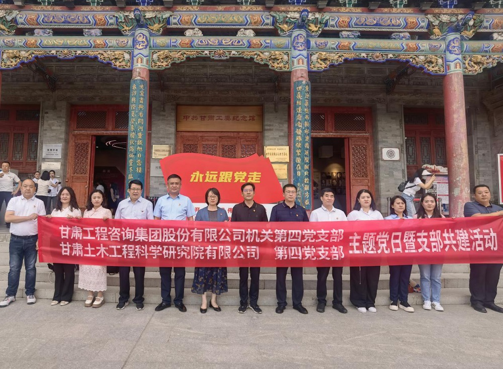為慶祝中國共產黨成立103周年,7月1日,集團公司機關第四黨支部與土木工程院第四黨支部赴中共甘肅工委紀念館開展“七一”主題黨日暨支部共建活動。集團公司黨委副書記、董事王春燕,黨委宣傳部(黨群工作部)部長、機關黨委副書記丁永升,黨委宣傳部(黨群工作部)副部長、機關黨委書記金生磊,集團公司機關第四黨支部黨員,土木工程院黨委書記、監事會主席、工會主席張磊,黨委委員、紀委書記張健,土木工程院第四黨支部部分黨員及發展對象參加了本次活動。