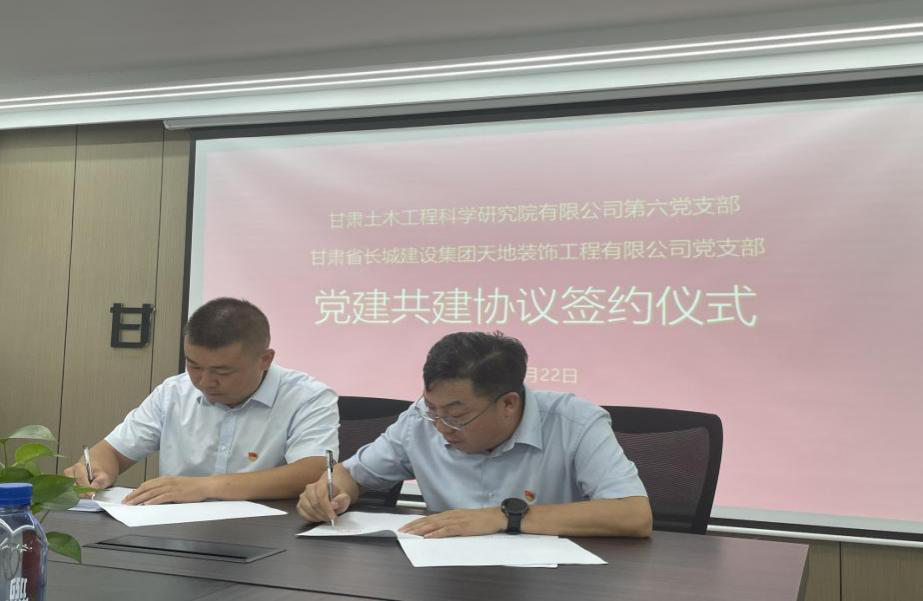 為深入學習貫徹黨的二十屆三中全會精神,加強基層黨建工作,2024年8月22日,公司第六黨支部與甘肅省長城建設集團天地裝飾工程有限公司黨支部以甘肅省機關事務管理局房屋統(tǒng)建管理中心所屬“原重點工程公安局辦公樓維修改造項目”為載體,在長城建設集團開展了“黨建共建”活動,雙方開展座談交流并舉行了黨建共建協(xié)議簽約儀式。