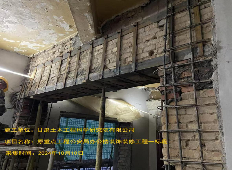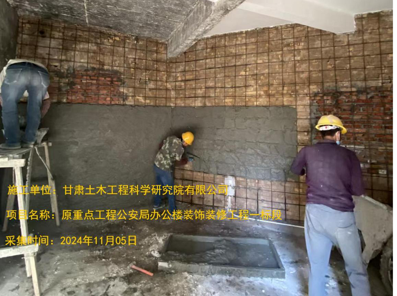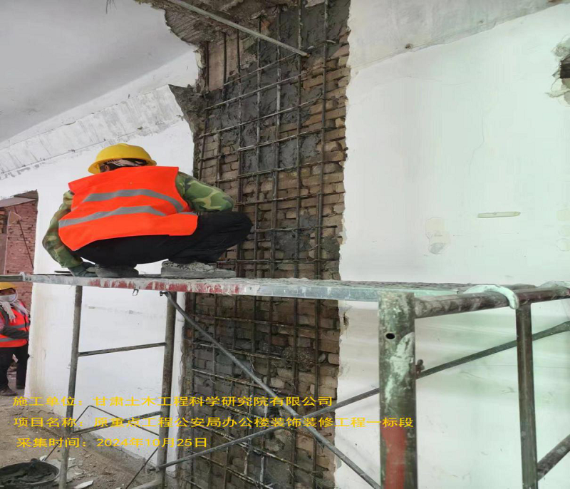因運行安全需要,2024年9月,公司承攬了原重點工程公安局辦公樓裝飾裝修工程一標段(結構加固設計與施工),作業內容是對建筑物現澆鋼筋混凝土梁、板、柱、墻體等進行結構加固,2025年7月4日整體竣工。本項目位于甘肅省蘭州市城關區民主西路11號,始建于1960年,建筑物于1980年進行過抗震加固。該建筑為地上五層磚砌體結構,建筑物承重墻采用燒結普通磚砌筑,建筑物軸線總長為67.8m,總寬為12.2m,一層至四層層高均為3.2m,五層層高為4.2m,建筑高度為17.6m,總建筑面積約3454.47㎡。