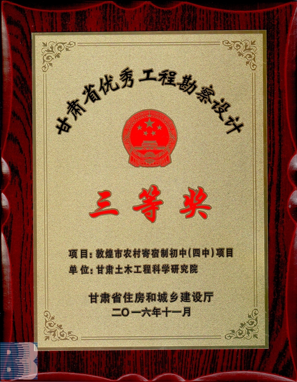 《敦煌市農村寄宿制初中(四中)項目》(2016年度甘肅省優秀工程勘察設計三等獎)