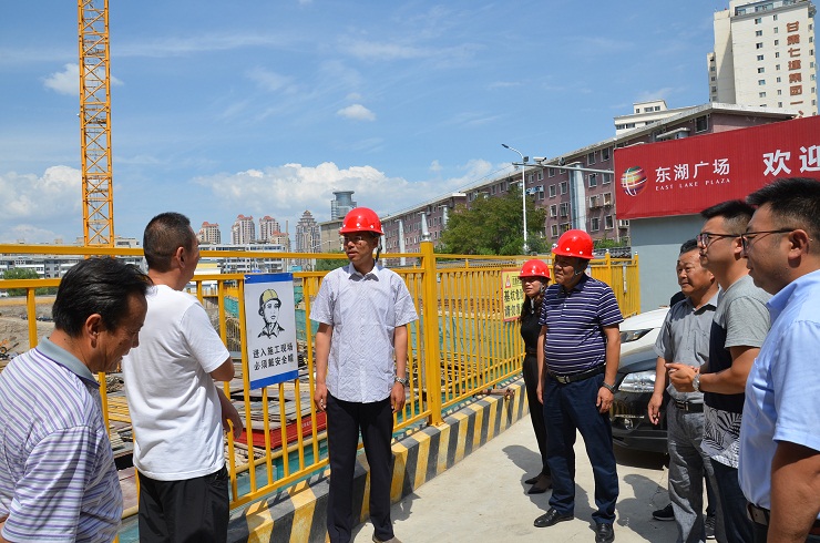 在東湖廣場、盛達金城廣場兩項目現場,章海峰同志一行詳細詢問了工程建設情況和夏季高溫作業職工的勞動保護措施落實情況,充分的肯定了各施工現場對防暑降溫工作采取的一系列保障措施,并要求各施工現場科學、合理安排好作息時間,進一步落實安全生產責任制,消除各類安全隱患,保證職工身心健康和施工安全。他向一線工作人員們送上了茶葉、飲料等防暑用品,并對我院廣大一線職工戰高溫、斗酷暑,一如既往地堅守在工作崗位上的辛勤工作表示感謝,親切叮囑他們注意安全,保重身體。